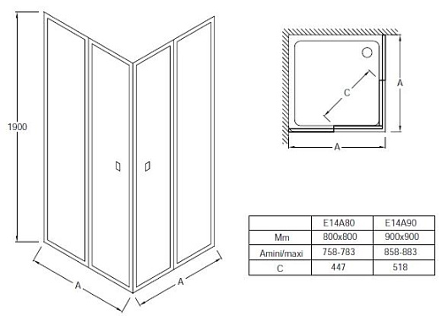 Тип товара Дверь для душа, двустворчатая, складная