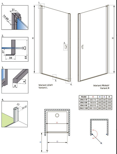 Дверь для душа, распашная Radaway Nes DWJ I 10026100-01-01L