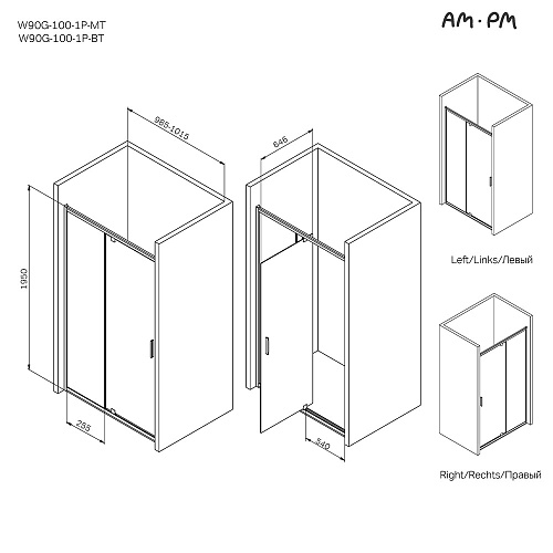 Дверь для ниши AM.PM GEM W90G-100-1P-BT