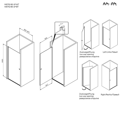 Тип товара Душевая дверь в нишу 90x190 см, распашная