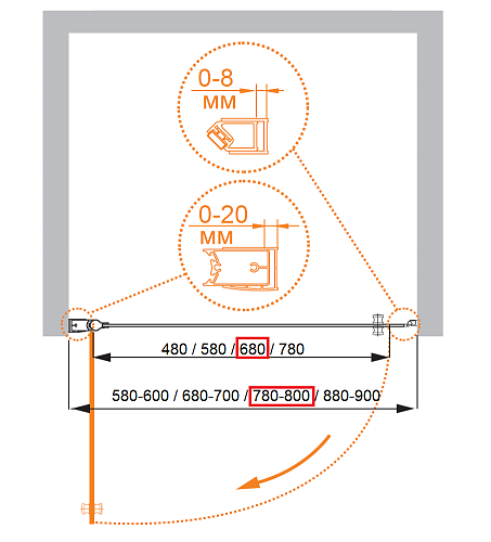 Дверь для ниши Cezares ELENA ELENA-W-80-C-Cr