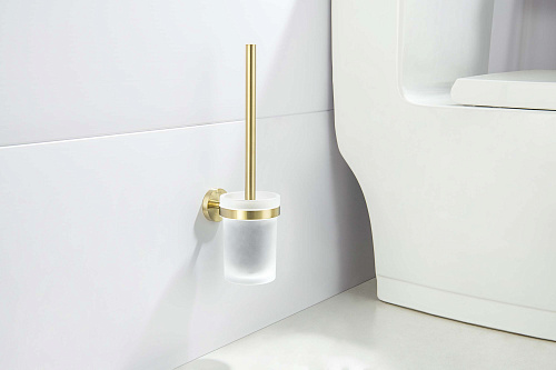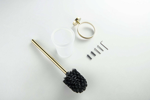 Материал - Латунь Стакан из матового стекла Головка ершика из Пластика, цвет Черный Держатель из нержавейки Упаковано в белую коробку Размеры: 94*119*357мм
