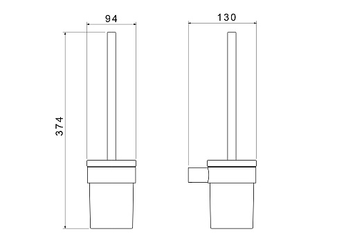 Материал - нержавейка Стакан из матового стекла Головка ершика из Пластика, цвет Черный Держатель из латуни Упаковано в белую коробку Размер: 94*130*374мм
