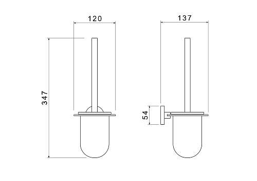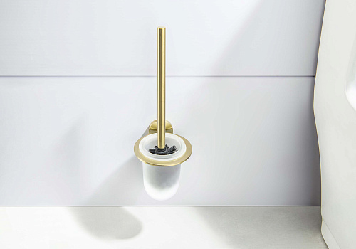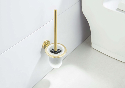 Материал - Латунь Стакан из матового стекла Головка ершика из Пластика, цвет Черный Держатель из нержавейки Упаковано в белую коробку Размеры: 120*137*347мм
