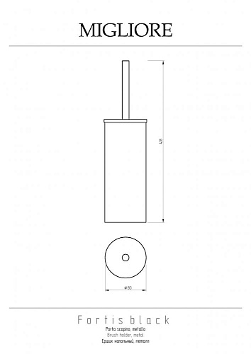 Напольный ершик коллекции Fortis бренда Migliore – это функциональный аксессуар для ванной комнаты. Внутри латунной колбы вставлена пластиковая колба, которую легко вынуть, чтобы помыть.
