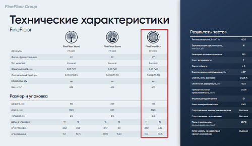 Коллекцию FineFloor Rich отличает максимально реалистичное исполнение фактуры натурального дерева, которое получено благодаря применению технологии тиснения в регистр: рельеф поверхности покрытия в точности повторяет древесный рисунок. Благодаря толщине защитного слоя PVC 0,55 мм, кварц-винил FineFloor Rich подойдет для использования как в любых бытовых, так и в коммерческих помещениях без ограничения по уровню нагрузки. ВАЖНО! При использовании в ванной комнате и коммерческих помещениях плитку необходимо приклеивать к основанию.