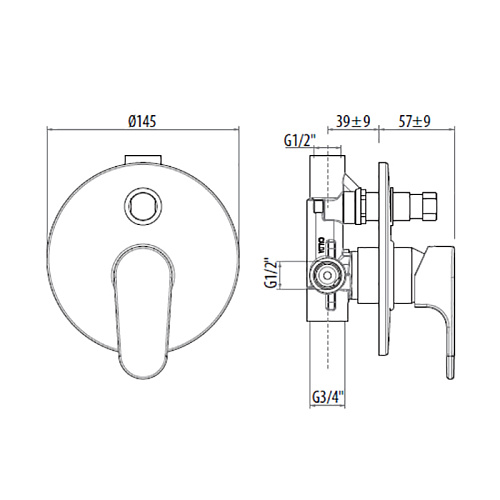 Gattoni 1034/10C0 H2omix1000 Встраиваемый смеситель с переключением, укомплектован внутренней частью, цвет хром