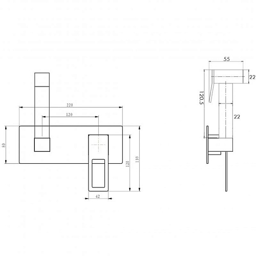 Оснащение Гигиенический душ, держатель для душа, душевой шланг, комплект креплений, скрытая монтажная часть, смеситель, шланговое подключение