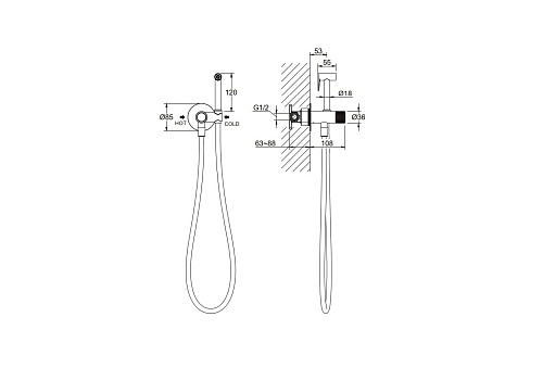 Оснащение 1. Смеситель для душа (внешняя и скрытая часть) 2. Душевой гарнитур: гигиеническая лейка, шланг, шланговое подсоединение с держателем 3. Декоративные накладки на стену из нержавеющей стали 2,5 мм