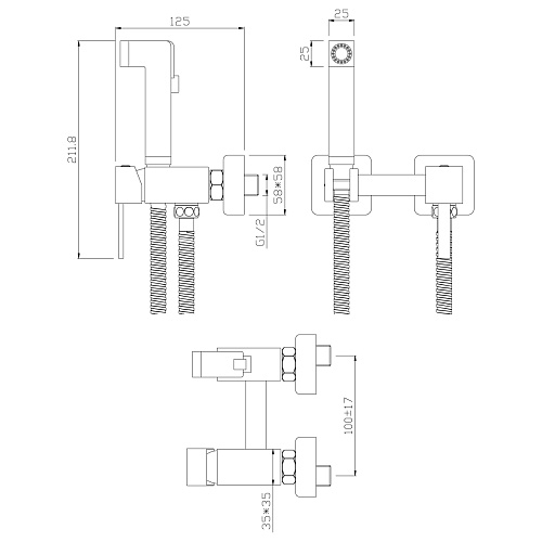Пользоваться гигиеническим душем российского производителя Rossinka очень удобно. Модель изготовлена из латуни. Износостойкое хромовое покрытие придает ему зеркальный блеск и защищает от агрессивного воздействия влаги и высоких температур. Смеситель оснащен керамическим картриджем диаметром 25 мм, обеспечивающим плавное регулирование температуры и напора при помощи рычага. В комплекте ручная лейка с нажимной клавишей, а также все необходимое для настенного монтажа.