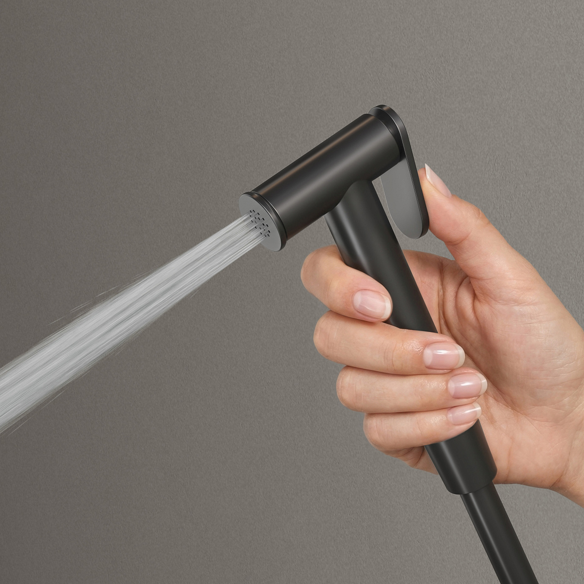 Гигиенический душ со смесителем скрытого монтажа. Материал корпуса- латунь; материал ручного душа - латунь;Шланг с защитой от перекручивания , 1,5 м. Прочное покрытие методом электроплейтинга; Цвет черный матовый