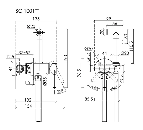 Гигиенический душ Sancos Start со смесителем, с внутренней частью, цвет черный матовый, встраиваемый, настенный, арт. SC1001MB. Количество режимов струи: 1. Защита от перекручивания. Функция экономии расхода.