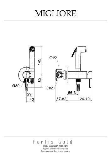 Гигиенический набор Migliore 30455 Fortis душевой, черный матовый