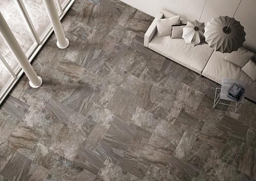 Керамогранит для ванной комнаты, кухни, прихожей, коридора, общественных помещений. Матовая поверхность, формат плитки 60х60 см, текстура под камень.
