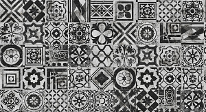 Керамогранит для ванной комнаты, кухни, прихожей, коридора, общественных помещений. Матовая поверхность, формат плитки 20х20 см, текстура под камень с изображением различных орнаментов.