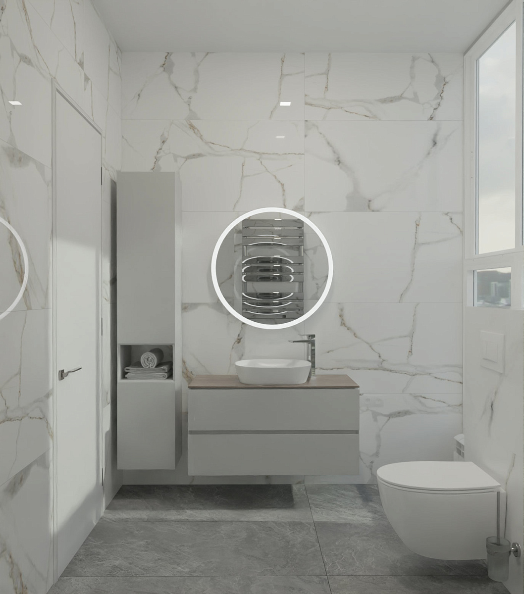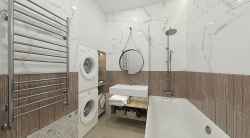 Глазурованный керамогранит под мрамор, размер 60*120. В стиле Современный. Поверхность полированная. Подходит для ванной комнаты, кухни, прихожей, жилых и коммерческих помещений.