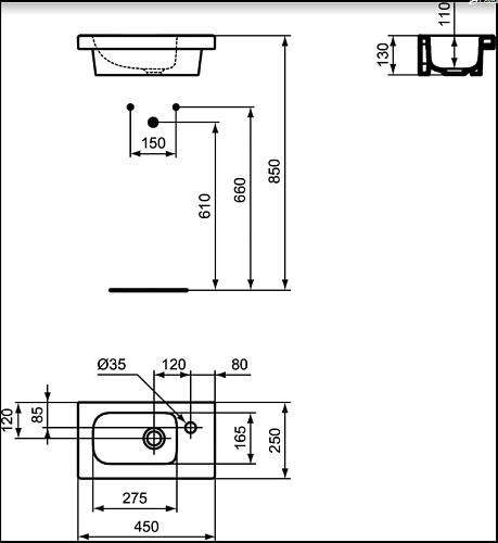 Раковина Ideal Standard E136101 Connect Space накладная 45х25 см, гостевая, правая версия, Euro White (евробелый)