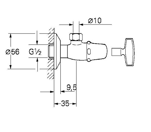 настенное подключение 1/2" резьбовой отвод 3/8" Ключ закрытая крышка с накидной гайкой ? 10 мм маркировка: нейтральная надвижная розетка GROHE StarLight хромированная поверхностьAtlanta Угловой вентиль 1/2" настенное подключение 1/2" резьбовой отвод 3/8" Ключ закрытая крышка с накидной гайкой ? 10 мм маркировка: нейтральная надвижная розетка GROHE StarLight хромированная поверхность