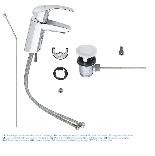 монтаж на одно отверстие металлический рычаг GROHE SilkMove керамический картридж 35 мм регулировка расхода воды с ограничителем температуры GROHE StarLight хромированная поверхность GROHE EcoJoy 5,7 л/мин GROHE QuickFix быстрая монтажная система сливной гарнитур 1 1/4" гибкая подводкаАртикул 33265002