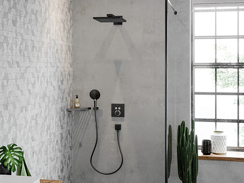 Верхний душ Hansgrohe Raindance 26238670, 300x300 мм, 1 режим струи, с держателем, черный матовый
