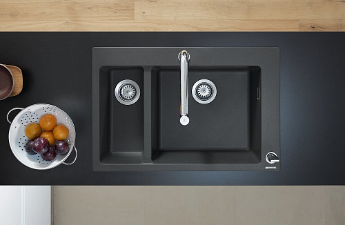 Комплект Hansgrohe C51-F635-09 43220000 (мойка + смеситель) вызывает интерес своим чувством меры и утилитарностью. У нее интересная прямоугольная форма, позволяющая наиболее осмысленно спланировать кухню и определить для мойки отличный уголок в соответствии с ее габаритами: шириной 770 мм и высотой 205 мм. Кухонная мойка выполнена из искусственного гранита в цвете черный. Это надежный материал, который ослепительно выглядит в интерьере помещения. Модель устанавливается на столешницу, встраиваемая сверху. Глубина чаши 510 мм идеальна: посуда помещается, и брызги воды при сильном напоре не разлетаются в разные стороны. Производитель Hansgrohe определил гарантийный срок работы: 5 лет.