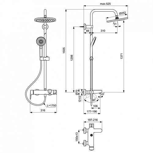 Душевая система Ideal Standard B2267AA Idealrain Eco Evo со смесителем для ванны/душа, Chrome (хром)