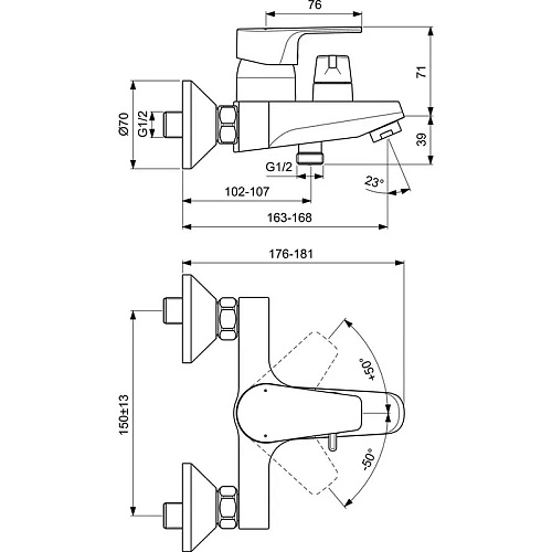 Смеситель Ideal Standard BC494U8 Cerafine D для ванны, хром/серый жемчуг