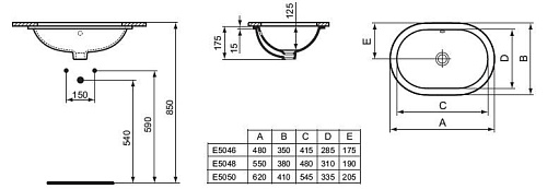 Раковина Ideal Standard E505001 Connect встраиваемая снизу 65х41 см, Euro White (евробелый)