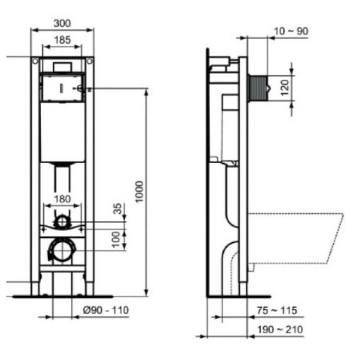 Промо-комплект 3 в 1, состоящий из: E803501 CONNECT Подвесной унитаз, глубокий смыв; E712701 CONNECT Сидение и крышка для унитаза с функцией плавного закрытия, дюропласт, с функцией fast fix (легкосъемное), шарниры металл/пластик; E233267 PROSYS ECO FRAME M Встраиваемая инсталляция для монтажа подвесных унитазов. Для монтажа перед капитальной стеной или между двумя гипсокартонными стенами. Ширина рамы всего 30 см - подходит для узких стен. Рама тестирована нагрузкой 400 кг; устойчива к коррозии и царапинам. Легкая и быстрая установка при помощи системы EasyFix system. Регулируемая высота от 0 до 200 мм, регулировка высоты ножек. Встраиваемый бачок с фронтальным механическим управлением. Двойной смыв, пред-установка 6/3 л (регулировка до 4/2 л). Полипропиленовый бачок, устойчивый к термальным перепадам; прокладка против конденсата в комплекте. Маркировка наливного клапана CE EN 14055 CL1; тихий клапан, соответствующий стандарту NF, категория Class I; толщина бачка 187 мм; 1 точка подключения воды (вверху по центру). Аксессуары в комплекте: крепеж для унитаза, крепежи для рамы, подсоединения входящей и сливной труб, сливная труба и адаптор ?90/110, резиновая прокладка для унитаза ?45 мм, защитная коробка, запорный клапан G ?“.