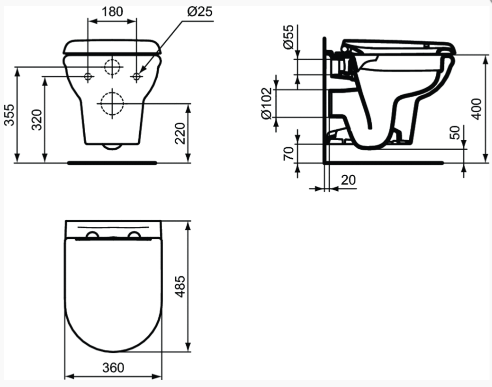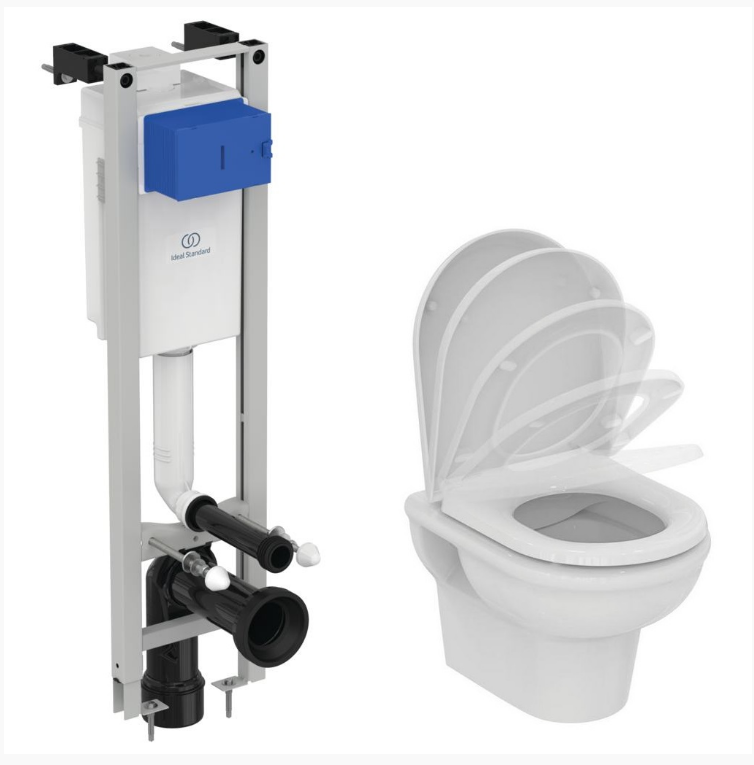 Комплект 3 в 1 Ideal Standard X022601 Exacto: подвесной унитаз Rimless безободковый R002601 + крышка-сиденье + инсталляция для монтажа Prosys Eco Frame M E233267, Euro White (евробелый)