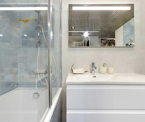 Керамогранит, размер 60*120. Поверхность матовая, под бетон. Подходит для ванной комнаты, кухни, жилых и коммерческих помещений. Современный стиль.