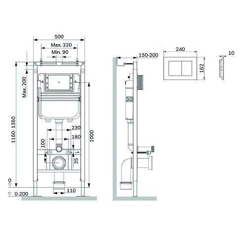 Максимально полный комплект поставки включающий все необходимые крепления патрубки звукоизолирующую прокладку. Экономия пространства благодаря узкому бачку – 120 мм глубиной. Заливной клапан с низким уровнем шума - Класс II согласно европейского стандарта EN 14124. Наша инсталляция заботится о гигиене самостоятельно. Просто положите таблетку в специальный отсек — и деликатная свежесть на весь срок её действия гарантирована. Функция SetUp : Гибкая система крепежа – универсальность и эффективность установочного процесса. Гибко обходит вертикальные и горизонтальные трубы. Высокая прочность и износостойкость. Рама выдерживает нагрузку до 500 кг. Внутреннее сечение профиля 3 мм обеспечивает надежность и долговечность конструкции. Подходит для унитазов любых размеров. Армированный шланг подачи воды двойная прокладка слива и подачи воды. Подключение воды сзади сверху. В комплекте механическая двухрежимная клавиша из ABS пластика в цвете глянцевый белый. ""