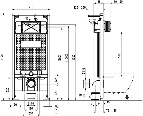 Инсталляция Deante CST_WC01 для унитаза 117.6х51 см, черный