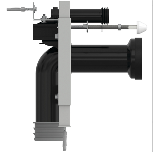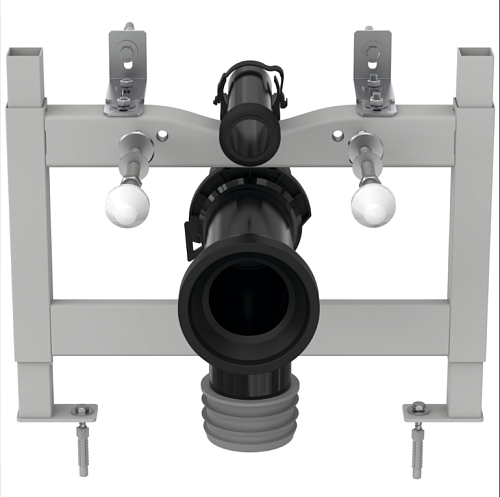 Аксессуары в комплекте: крепеж для унитаза, крепежи для рамы, подсоединения входящей и сливной труб, сливной патрубок (колено) с адаптором ?90/110 мм.