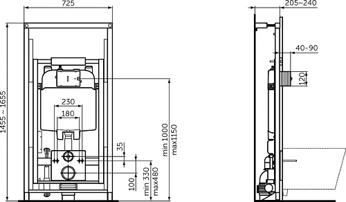 PROSYS COMFORT 80 Встраиваемая инсталляция для монтажа подвесных унитазов. Регулируемая рама Easy Move позволяет пользователю варьировать высоту унитаза при помощи пульта. Подходит для пожилых людей и людей с ограниченной подвижностью. Для монтажа в капитальной стене, фронтальная панель монтируется на готовой стене. Регулируемая рама PROSYS™ 80 с бачком двойного смыва 6/3 л. Эргономичная система с регулировкой высоты до 150 мм. Тихий электрический двигатель; электропитание 220V (50/60Hz); источник питания 350 Ватт; изоляция IP66. Скорость движения 28 мм/сек, сила нажима при толкании вверх - 600 кгс, сила тяги подъема 300 кгс; безопасное отключение. Рама тестирована нагрузкой 400 кг; устойчива к коррозии и царапинам. Легкая и быстрая установка при помощи системы EasyFix system. Фронтальная панель из закаленного стекла черного цвета (6x400x1345 мм). Встраиваемый бачок с фронтальным механическим управлением. Возможно пневматическое или электронное управление при помощи переходников, приобретаемых дополнительно. Технология SmartValve позволяет экономить до 9 л воды в день; маркировка CE EN 14055 CL1; тихий клапан, соответствующий стандарту NF, категория Class I; толщина бачка 74 мм; 6 возможных точек подключения воды.
