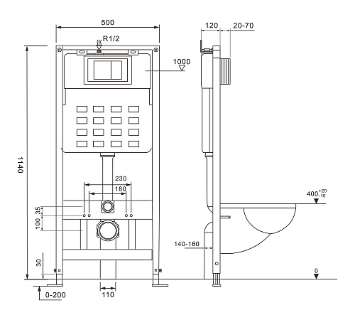 Тип товара Инсталляция с подвесным унитазом