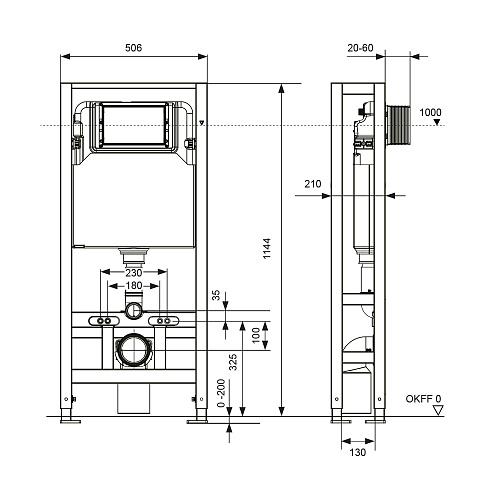 Подходит для отдельностоящего монтажа, когда нет несущей стены или она недостаточно прочная. Характеристики модуля: Несущая монтажная рама с порошковым покрытием поверхности Предварительно собранный сливной бачок Соединение для сливного бачка с наружной резьбой R 1/2" Монтаж заливного вентиля сверху или сзади бачка Объем бачка 6 л: настраиваемый объем малого смыва – от 3 до 5 л, большого – от 4 до 6 л Изоляция для предотвращения образования конденсата Настройка скорости смыва: регулировка сливного клапана для предотвращения разбрызгивания воды из чаши унитаза Комплект поставки: Застенный модуль на четырех опорах Две крепежные шпильки M 12 с гайками (для унитаза) Соединительный комплект унитаза, включая защитные заглушки Прокладка звукоизоляционная для унитаза Комплект крепежных элементов для установки модуля Фановый отвод для подключения к канализации DN 110. Дополнительно приобретается: Горизонтальная фановая труба DN 90, арт. AF042300-L18 (опционально) Адаптер DN 90 / DN 110, арт. AF042300-L19 (опционально) Фановый отвод DN90, арт. AF042300-L23 (опционально)