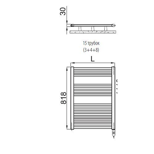 Irsap EIS058K50IR01NNN Irsap Ares Полотенцесушитель электрический 580x818x30мм (15 трубок-2 промежутка), мощность 400 ватт, с регулятором, провод 1200мм, цвет хром