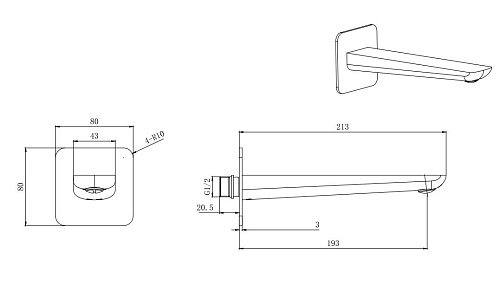 Оснащение 1. Излив 2. Настенный переходник/отражатель из нержавеющей стали