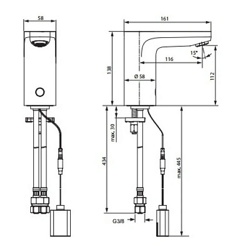 CERAPLUS Излив для раковины без смешивания, работа от батарейки, система монтажа EASY-FIX (облегченный монтаж), литой излив; крышка сенсора в комплекте (для использования во время чистки корпуса), длина излива 116 мм, ламинарный регулятор потока (защита от попадания бактерий) с ограничением потока 5 л/мин. электромагнитный клапан интегрирован в корпус, полнофункциональный электронный датчик (регулируемые функции), внешняя литиевая батарейка (DC 6V), гибкая подводка G3/8", шланги стандартной длины 400 мм. Изделие может использоваться только в системах высокого давления (мин. 0,5 атм); рекомендована предварительная установка фильтра 50 мм (для обеспечения надлежащей работы электромагнитного клапана).