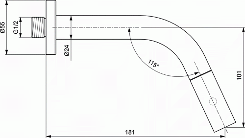 IDEALSTREAM Настенный излив для холодной воды или предварительно смешанной воды, трубчатый излив J180, регулятор потока на фронтальной части трубчатого излива, скрытый аэратор Cache M21.5x1, затвор на керамических дисках G1/2 на поворотной рукоятке, гайка 1/2”, пропускная способность при 3 атм 6 л/мин.
