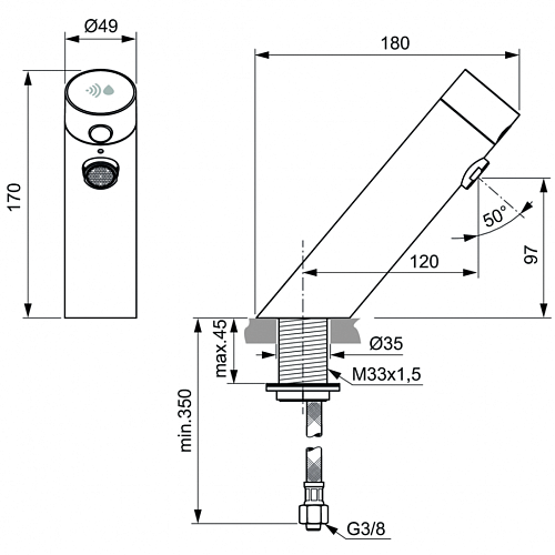Излив Ideal Standard A7556AA Sensorflow New электронный для раковины, без смешивания, Chrome (хром)
