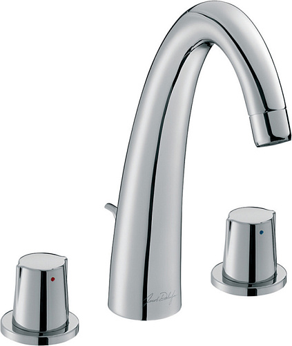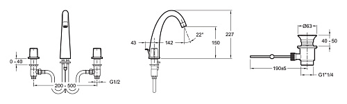 Смеситель для раковины на три отверстия с неподвижным изливом, гибкой подводкой и донным клапаном, Аэратор с антиизвестковым покрытием, Расстояние между центрами 200 и 500 мм