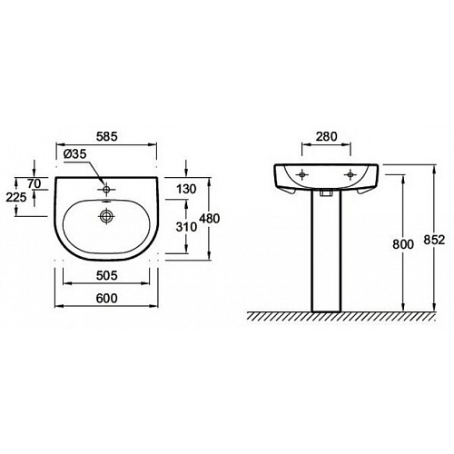 Раковина (60 х 48 см) с одним отверстием для смесителя