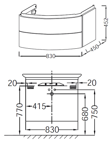 Мебель 83 см для раковины-столешницы 100 см E4436, Рекомендуемый смеситель Purist Е14042-4А, Ш83*Г45*В45,2 см, 2 выдвижных ящика с механизмом «плавное закрывание»