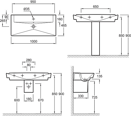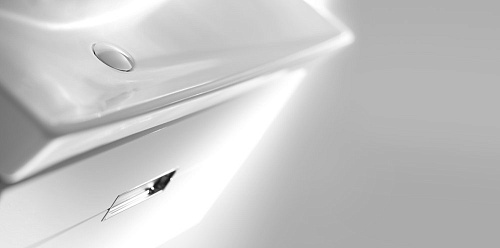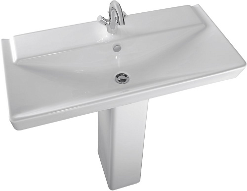 • Керамическая столешница (100 x 46,5 см) на собственной опоре, с отверстием для смесителя, с переливным отверстием и хромированной заглушкой E4061