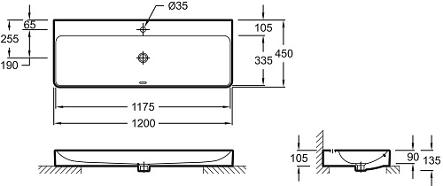 • Накладная раковина 120 х 45 см