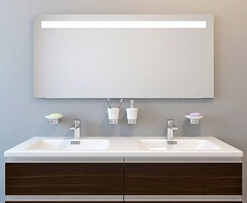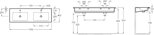 Двойная подвесная раковина-столешница с гладкой нижней поверхностью (для установки на мебель), 140 х 46 см, Одно отверстие для смесителя на каждой раковине, К заказу вместе с мебелью EB2020, EB2040 или EB2070, EB2090 (4 ручки на выбор)