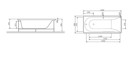 Жесткий металлический каркас окрашен порошковой краской.Все соединения каркаса изготовлены из анодированного или оцинкованного материала. Для регулировки ванны по высоте и уровню в комплект входят пластиковые ножки.