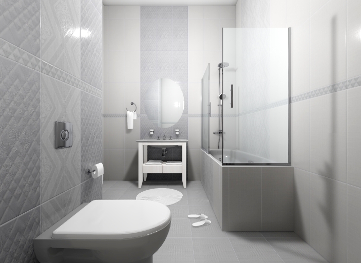 Настенная керамическая плитка для ванной комнаты. Матовая поверхность, формат плитки 31,5х63 см. Текстура под ткань (текстиль).